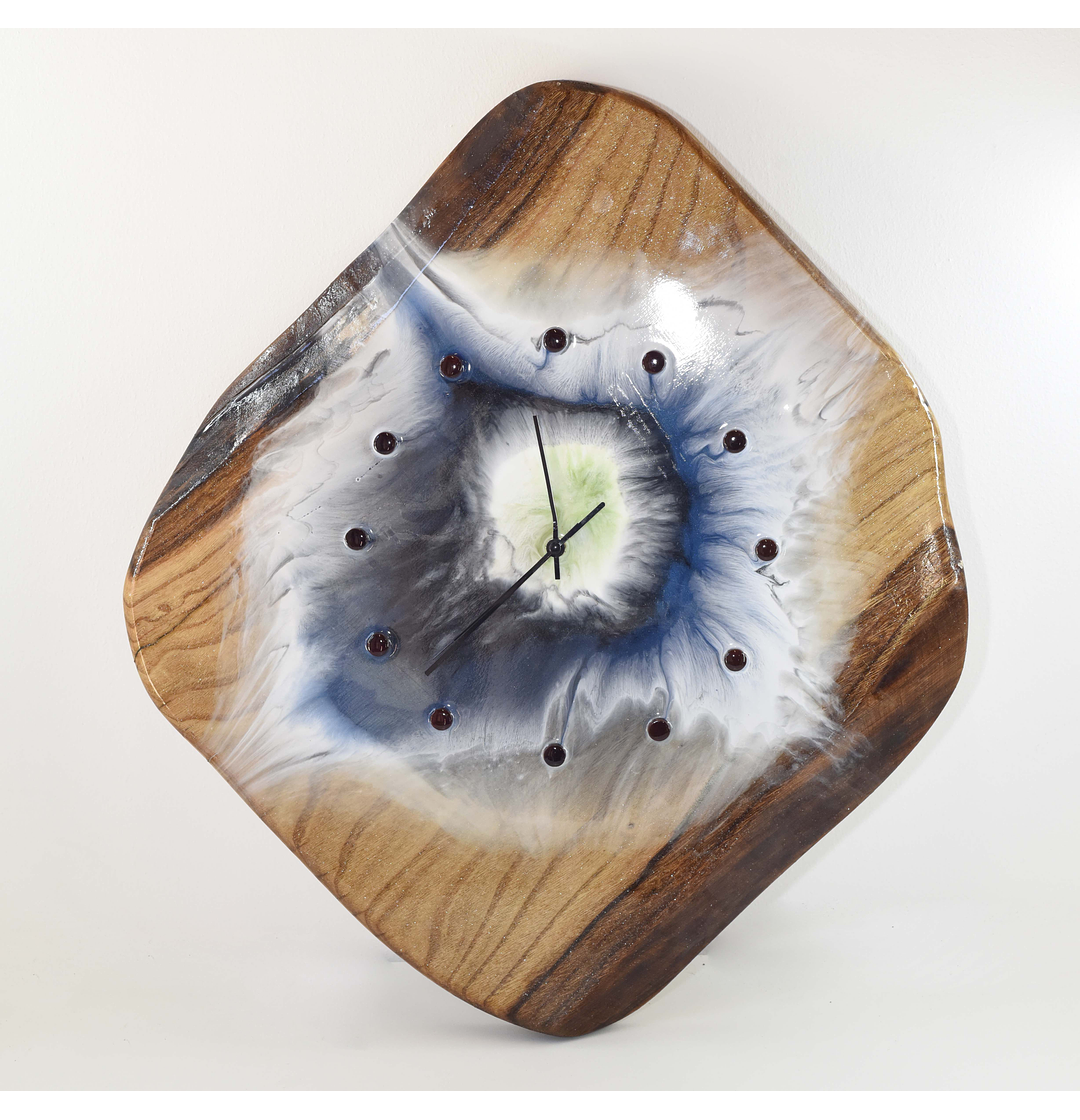 Material de elaboración: Madera castaño con un acabado en su diseño con resina epóxica